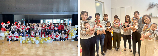 ベビマもヨガもできて、季節毎のクラフトやティータイムを楽しみながらお友達も作れる、ママと赤ちゃんの写真を残せる、そして助産師に育児相談もできる教室です。お子さんが楽しめるのはもちろん、ママもリフレッシュできて笑顔になれる、そんな教室作りに努めています。